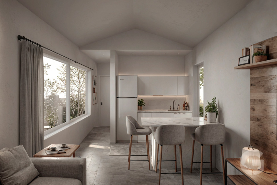 Cada componente de tu casa GARABI es seleccionado con un criterio riguroso de calidad, durabilidad y funcionalidad, garantizando una vivienda que no solo es estéticamente agradable y pensada al detalle.